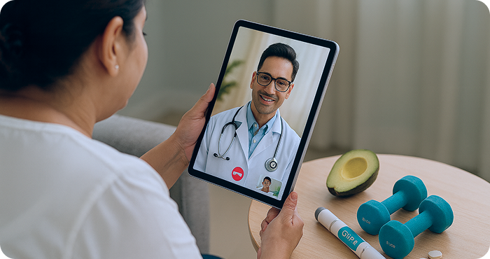 A call from our care counsellor followed by an at-home metabolic test & virtual expert medical consultation to assess GLP-1 suitability leading to a prescription by the physician